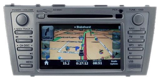 Штатная автомагнитола для Toyota. DVD-проигрыватель, воспроизведение MP3, MPEG4, навигатор с GPS, сенсорный дисплей 7", ТВ-тюнер, макс. мощность 4 x 45 Вт.Дополнительно